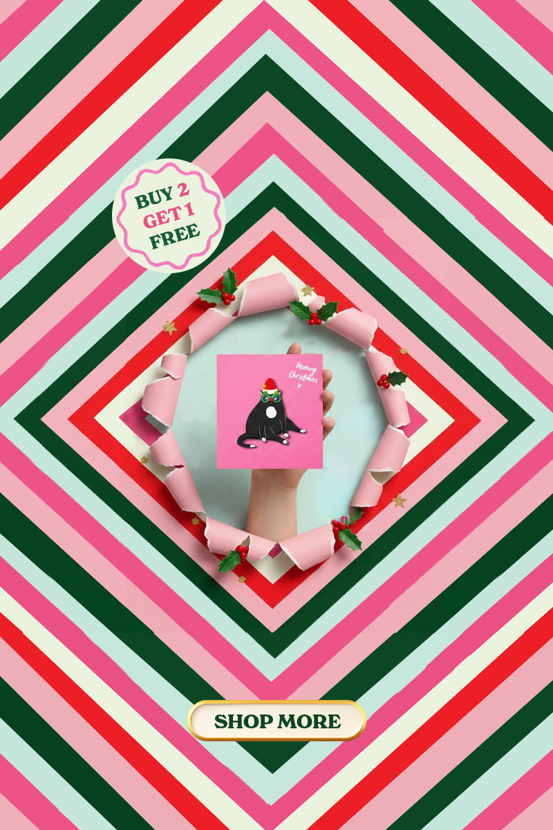 Merry Christmas Shopaholic Cat, Handmade Greeting CardMerry Christmas Shopaholic Cat, Handmade Greeting Card