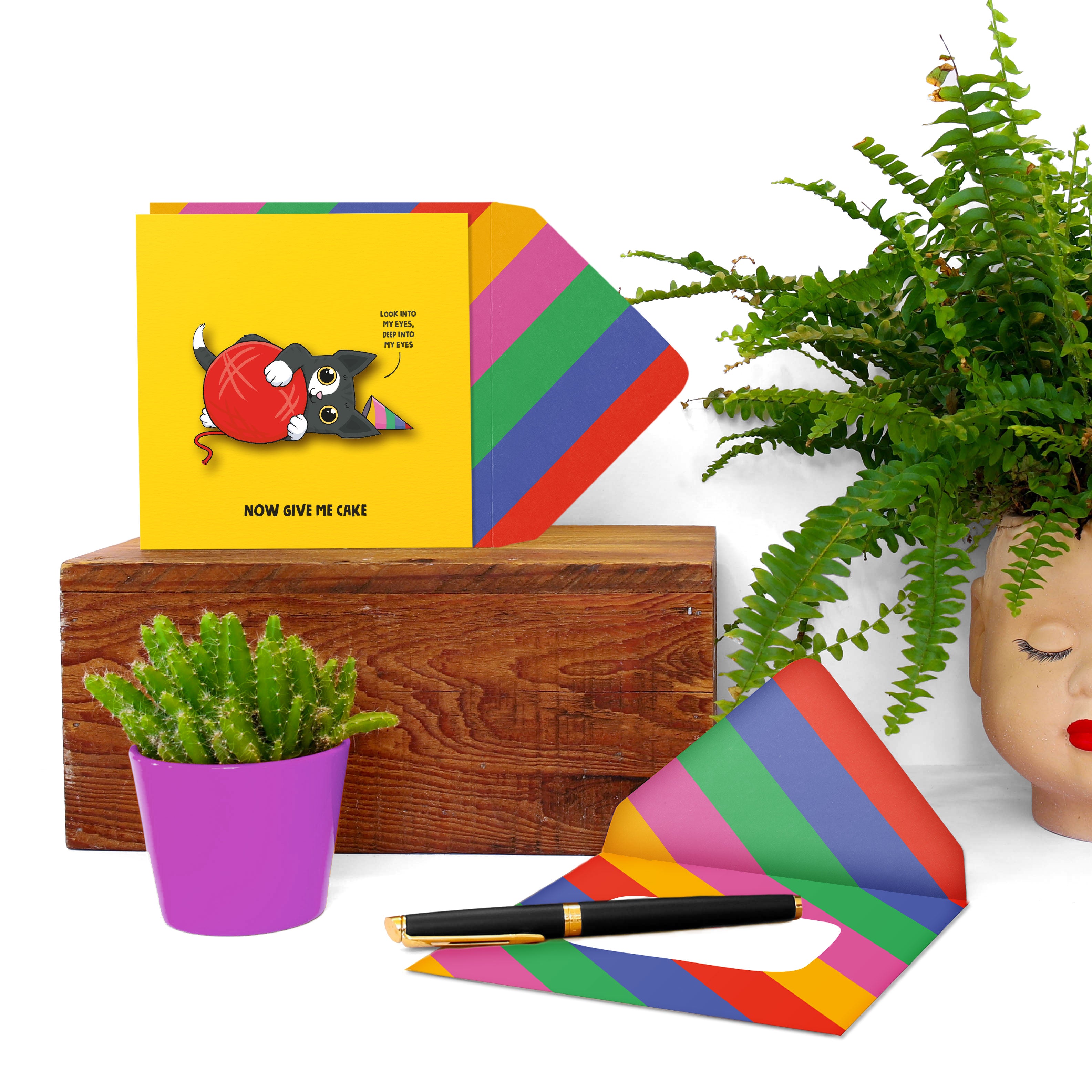 Cats & Dogs is the ultimate pet-lovers collection. With pooches and pussycats of all shapes and sizes, each handmade card is accompanied by striped and black confetti envelopes to make these cards a real treat for someone special.