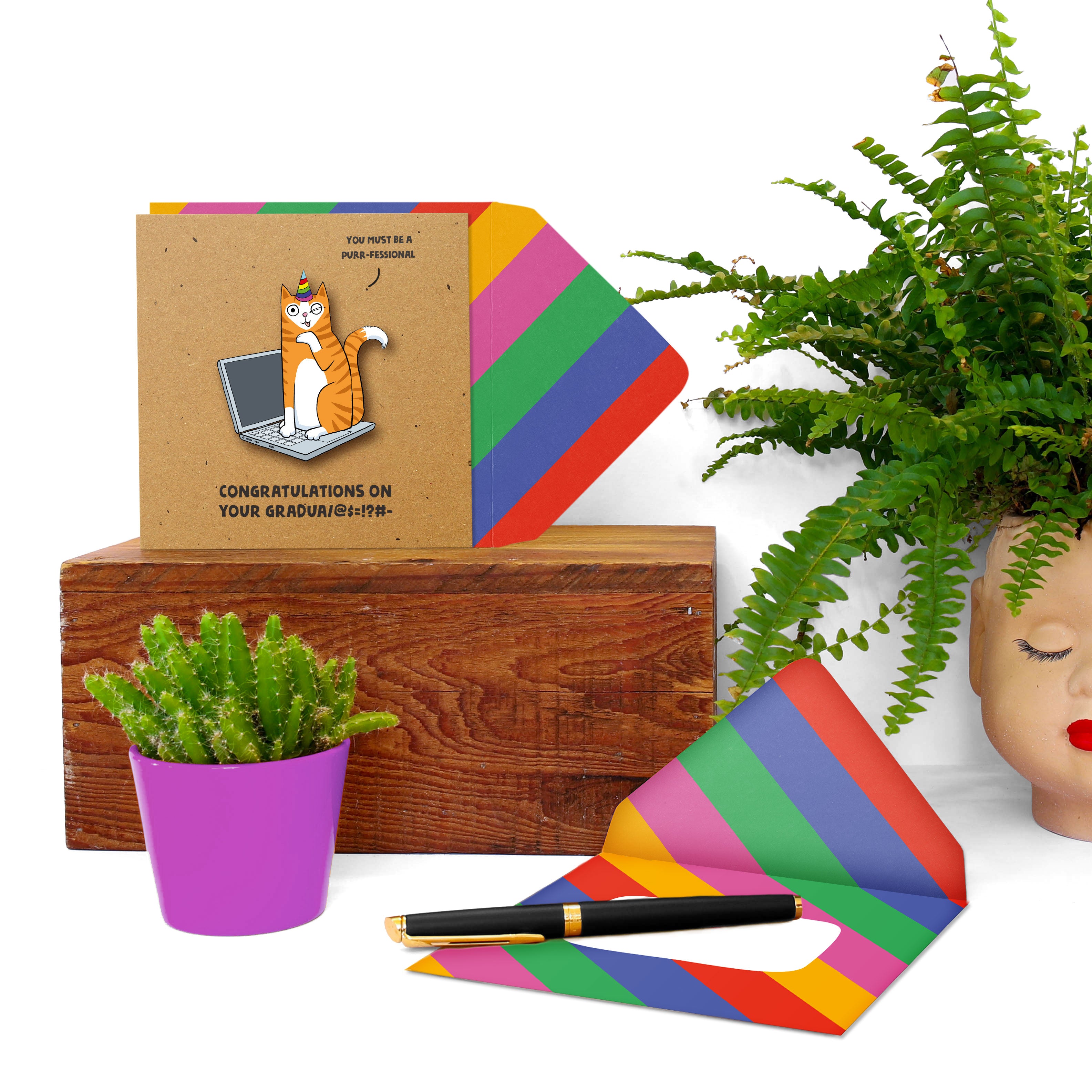 Our cards come secured with a branded, recyclable cardboard corner clasp as standard. Alternatively, select our fully biodegradable cellophane bags (please note a 2p per unit surcharge applies).