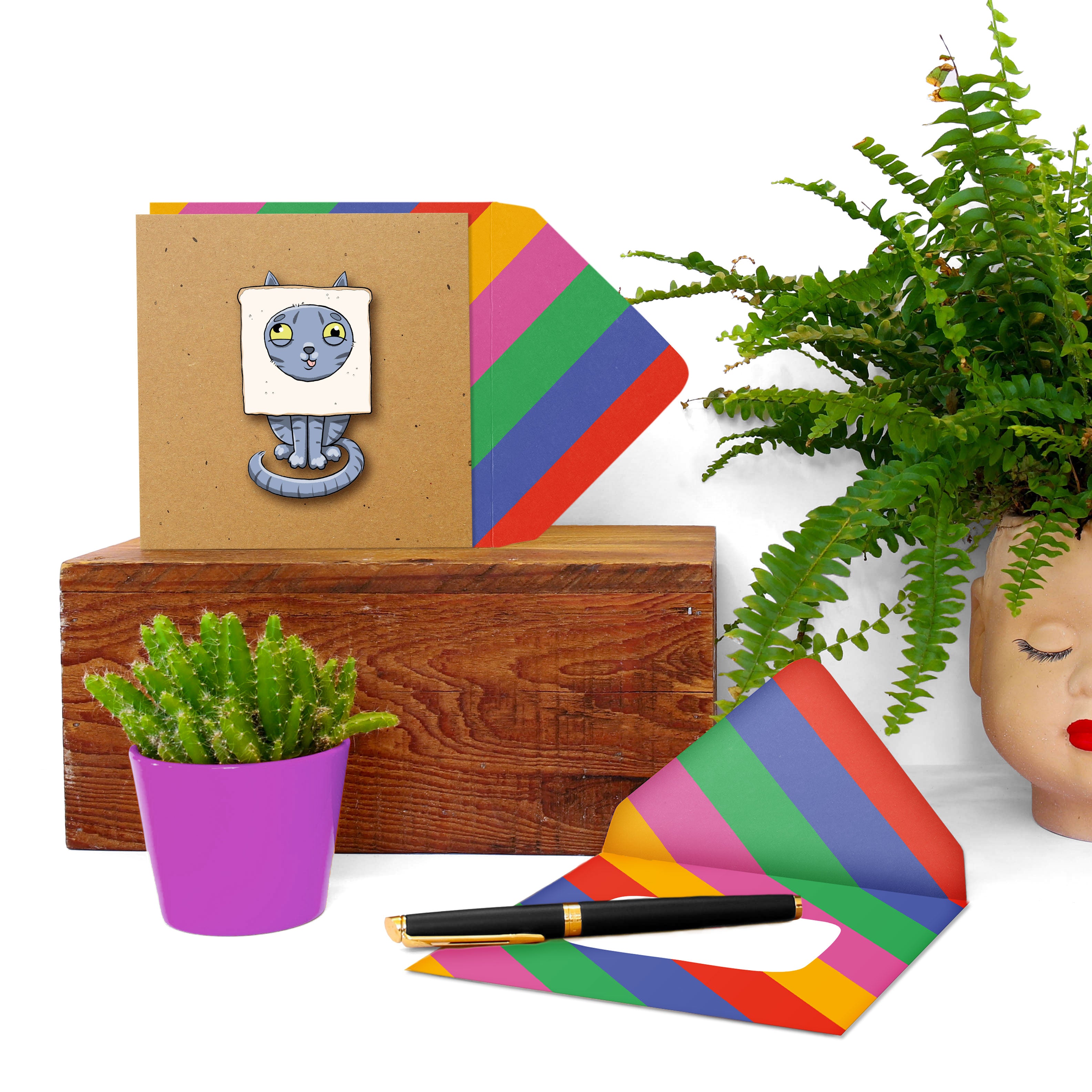 Our cards come secured with a branded, recyclable cardboard corner clasp as standard. Alternatively, select our fully biodegradable cellophane bags (please note a 2p per unit surcharge applies).