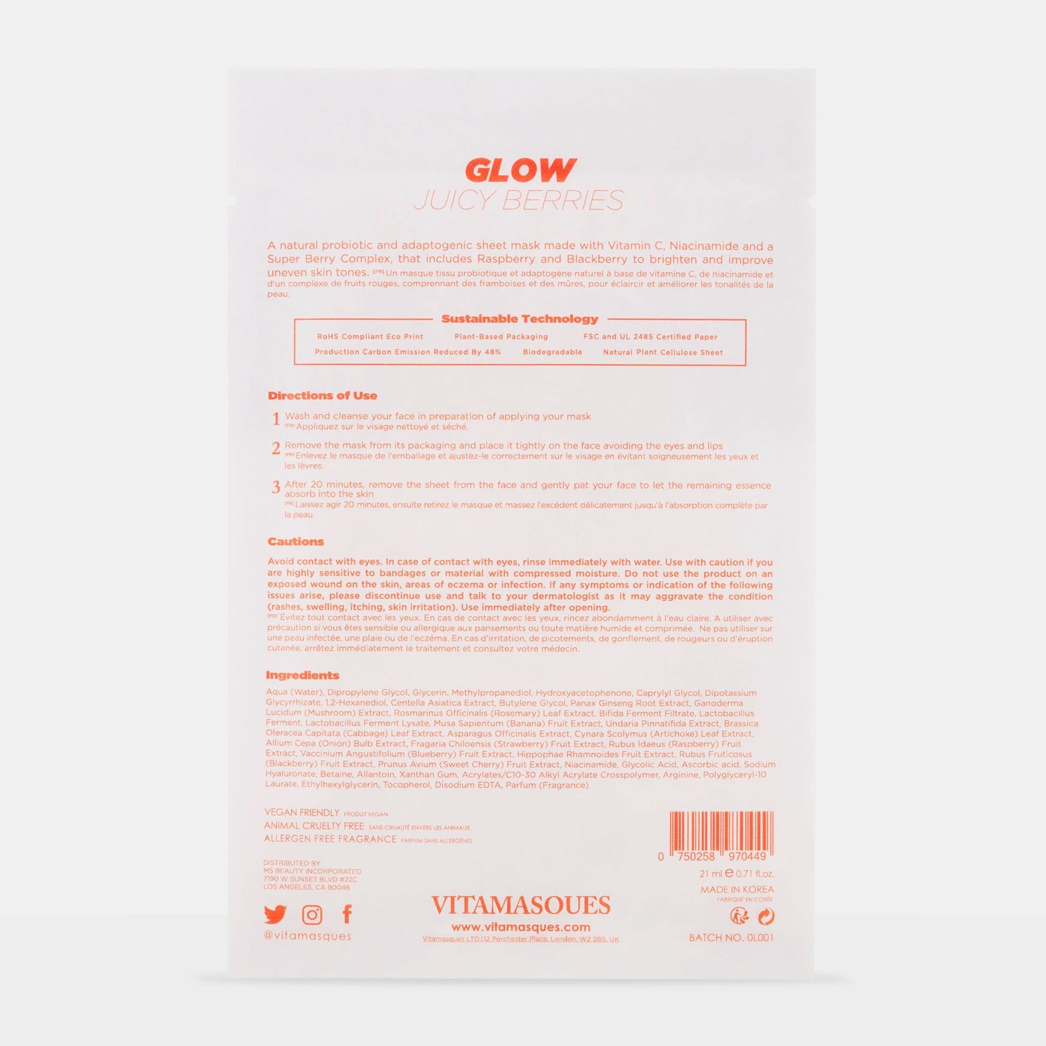 What Makes This Mask Sustainable? They've developed the world's 1st sustainable and biodegradable pouch for sheet masks, utilising paper, plant-based film and environmentally friendly printing technology, with the following benefits: