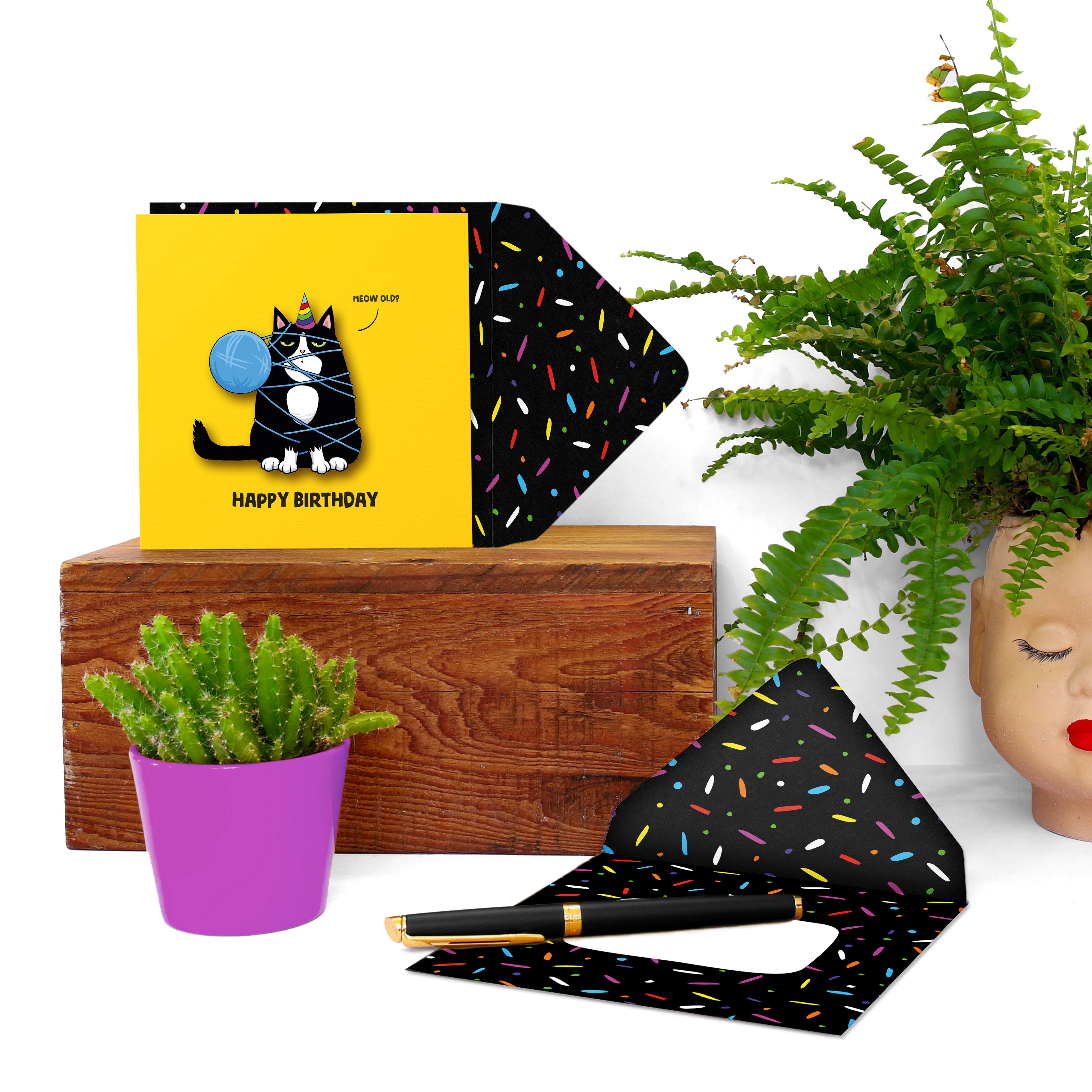 Cats & Dogs is the ultimate pet-lovers collection. With pooches and pussycats of all shapes and sizes, each handmade card is accompanied by striped and black confetti envelopes to make these cards a real treat for someone special.